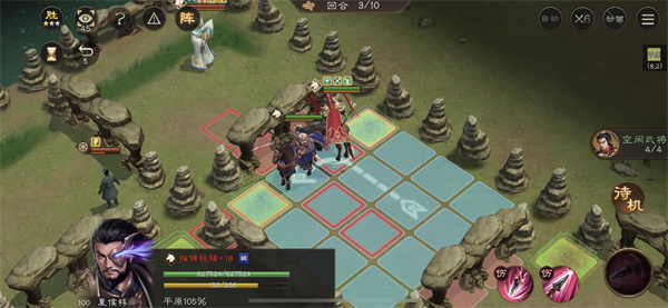 在新三国志曹操传游戏中玩家可以完成许多关卡和挑战,部分玩家不知道困难35-5奇门八卦如何达成三星,下面就为大家带来新三国志曹操传游戏中奇门八卦的三星攻略分享,有需要的玩家可以参考。 新三国志曹操传奇门八卦三星 上阵阵容: 吕布,夏侯惇,貂蝉,曹操,曹操刚需。 第一回合 曹操开加速的buff,输出位才能走到左上角的格子。 吕布二技能扫掉前排两个挡路小兵,貂蝉再动吕布,吕布走左上角格子传送过去。 夏侯惇靠右边先清一个小兵。 第二回合 夏侯惇也走左上格子传送过去, 其他人不用动 原地待定就行。 第三回合 夏侯惇和吕布如图站位, 等诸葛亮开大招,会把吕布和墩子吸过去。 第四回合 吕布夏侯惇集火诸葛亮。 |