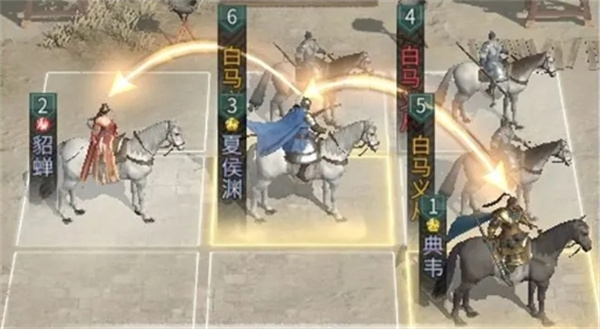 在三国天下归心游戏中玩家们可以选择不同的角色来组成各种玩法和流派,部分玩家不知道神速反击队应该怎么玩,下面就为大家带来三国天下归心中神速反击队的玩法攻略,有需要的玩家可以参考。 三国天下归心神速反击队应该怎么玩 阵容组成: 神速反击队是一支偏早期就可以发力的队伍,三位英雄均达到苍绿阶后,阵容基本成型。唯一绝世英雄貂蝉,可以通过首充奖励轻松获得。三位英雄的分工偏向传统的辅助-输出-承伤,夏侯渊为核心输出,依靠频繁触发夏侯渊追击造成伤害。 夏侯渊:其天赋技能【奔雷击电】随机索敌,可越过前排直接对后排造成伤害,并对低兵力单位造成额外伤害,作为核心可以快速压制敌方兵力。 典韦:其天赋技能【折冲左右】可提升追击格上单位格挡,保障输出位夏侯渊的生存。主动发动时可嘲讽敌方单位,限制敌方输出。同时典韦在受到直接伤害时会对伤害来源反击,能为队伍补充部分伤害。 貂蝉:在本次改版中,加强了对追击位英雄的伤害提升,所有技能效果都是对追击格单位增益,是当之无愧的追击位金牌辅助。 阵容站位: 夏侯渊天赋技能在追击触发时概率发动,需将其放置在貂蝉、典韦的追击格上,故采用图示站位。 夏侯渊推荐携带【白虹贯日】、【层锋叠刃】等技能,强化输出,保证越过敌方前排输出能力。貂蝉则推荐【阳春白雪】【凌波微步】等技能为队伍提供治疗,提供容错。典韦既可以选择【鹿角十重】、【虚实相生】等技能提升追击伤害,也可以用【一夫当关】、【缮甲厉兵】等技能强化承伤生存能力。 |